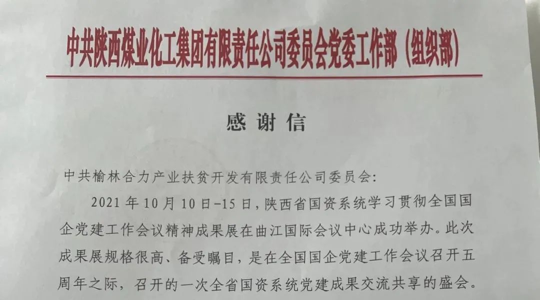 陜煤集團(tuán)給榆林合力公司發(fā)來(lái)感謝信