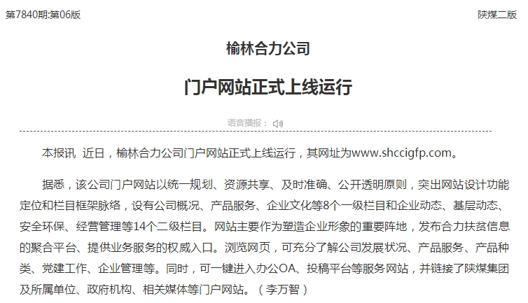 陜西工人報(bào)——榆林合力公司門戶網(wǎng)站正式上線運(yùn)行