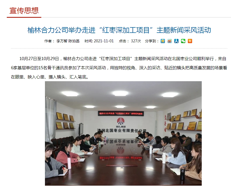 陜煤集團(tuán)網(wǎng)站——榆林合力公司舉辦走進(jìn)“紅棗深加工項(xiàng)目”主題新聞采風(fēng)活動(dòng)